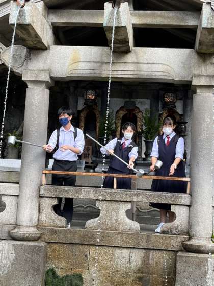 音羽の滝で手を洗います。願いが叶うといいですね。