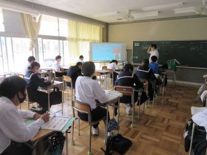 2年生は衣生活について学習しています。今日は,和服と洋服のちがいや男性と女性の和服を比較して,和服のよさを考えていました。これまでに七五三や夏の浴衣で経験している人がいましたが,これからも着る機会があるといいですね。