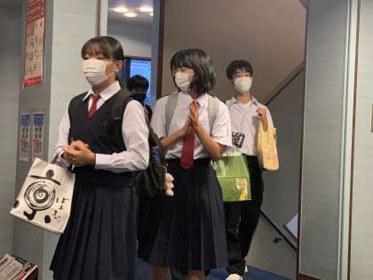 充実した表情!?で、班別学習を終えた生徒たちが続々と宿に帰ってきました。