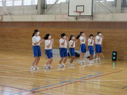 10月13日(木) 2年生(体育)「ダンス」 公開日 2022/10/13 更新日 2022/10/13 できごと 2年生は,桜華祭の本番に向けた中間発表会を控え,グループで練習していました。ほぼできあがり,気持ちよさそうに踊っています。