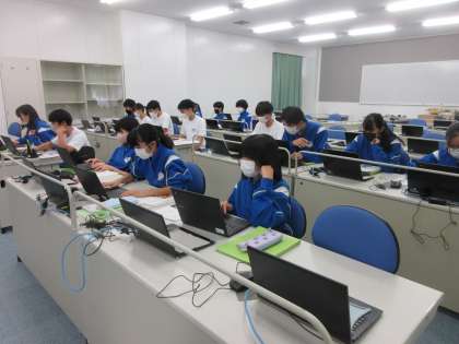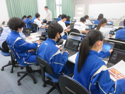 10月18日(火) 3年生(技術科)「プログラミング」 公開日 2022/10/18 更新日 2022/10/18 できごと プログラミングの学習が続いています。HTML言語を使っていろいろなことを命令できます。かなり慣れてきて,自分のペースでどんどん進められています。