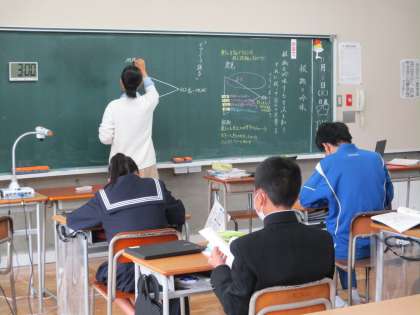 11月1日(火) 2年生(国語)「根拠の吟味」 公開日 2022/11/01 更新日 2022/11/01 できごと 「モアイは語る」の筆者の主張について吟味するために、三角ロジックを使って、まず自分たちの身の回りにある課題について考えました。それは、「男子と女子のマラソンは同じ距離にするべきだ」という意見についてです。生徒は積極的に考え発言していましたが、最終的には、現状の距離の差が妥当だろうという結論になったようです。そして、本題のモアイは語るに戻りました。