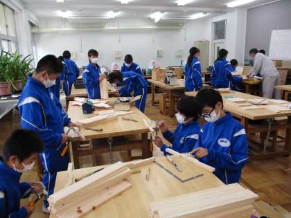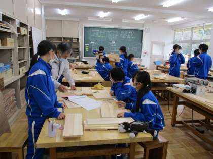 11月1日(火) 1年生(技術科)「木工製作」 公開日 2022/11/01 更新日 2022/11/01 できごと くぎ打ちをして仕上げに近づいているグループが増えてきました。同じものを製作する仲間と協力しながらがんばっています。
