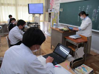 11月1日(火) 3年生(国語)「初恋」 公開日 2022/11/01 更新日 2022/11/01 できごと 島崎藤村の「初恋」を読んでいます。これまでに,言葉の響きを味わいながらこの詩が表す初恋模様を理解しました。ここでは,七五調のリズムや文語体を味わいながらこの詩のよさをさらに理解しました。全体を通して感じたことや考えたことをまとめて共有します。わくわくです。
