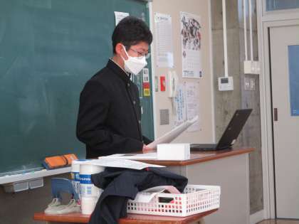 自由研究の理科・社会の分野から、各校代表1名ずつが発表しました。本校からも代表者が発表しました。内容がとても分かりやすく、しっかりした態度で発表ができたと思います。