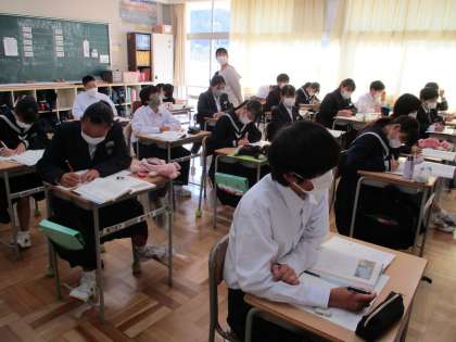 11月7日(月) 1年生(国語)「蓬莱の玉の枝」 公開日 2022/11/08 更新日 2022/11/08 できごと 古典の学習を進めています。いよいよ「竹取物語」の「蓬萊の玉の枝」に入りました。「蓬萊の玉の枝」とは貴公子がかぐや姫に求婚するために課せられたミッションの一つです。クリアすることは難しく,かぐや姫やその周りの人たちの行く末はどうなるのか,古文で読んでいきます。