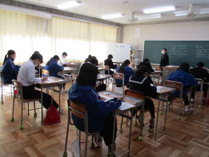 11月16日(水) 2学期期末テスト2日目(3年生) 公開日 2022/11/16 更新日 2022/11/16 できごと 昨日に引き続き,3年生は今日も期末テストです。 2日目は,理科・保健体育・英語・音楽のテストが行われます。今日も集中して取り組んでいます。
