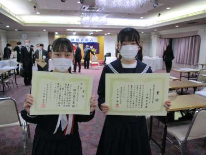 藤岡商工会議所にて「納税表彰式」が行われ,中学生の「税についての作文」の表彰がありました。3年生と1年生が入賞して表彰され,3年生は入賞者の代表として作文を読みました。東日本大震災の復興支援を例に挙げ,税金が命を救い暮らしを支えていること,未来のために納税できる人になりたいことをしっかり伝えられ,立派でした。