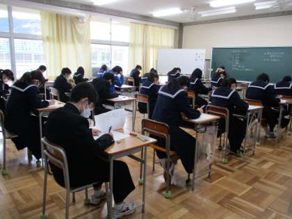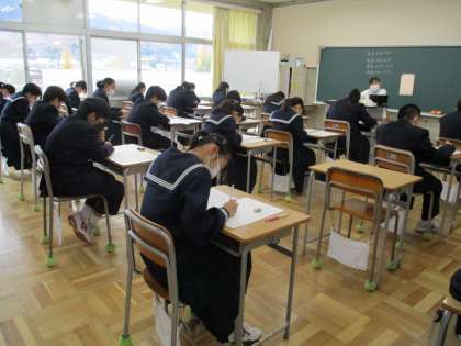 11月21日(月) 1・2年生「2学期期末テスト」 公開日 2022/11/22 更新日 2022/11/22 できごと 早いもので、2学期も残すところ、約一ヶ月です。ということで、1・2年生は締めくくりの期末テストに臨んでいます。日頃の学習の成果が発揮できるといいですね。