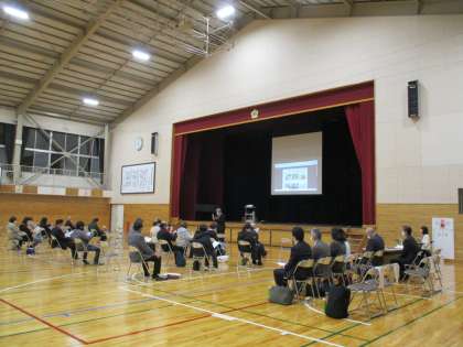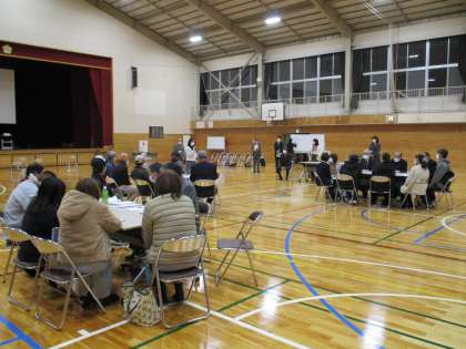 鬼石連携型小中一貫校「おにしわくわくネットワーク」のボランティアの皆さんで集う会が,鬼石中学校の体育館で行われました。