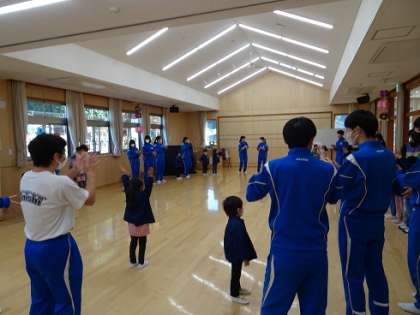 2週間前の1組に続いて今日は2組が,2校時から3校時にかけて鬼石こども園でふれあい体験をさせていただきました。音楽に合わせて一緒に踊ったり,持参した手作りおもちゃを使って遊んだり,実際に子どもたちとふれあえる貴重な体験になりました。写真では子どもや3年生の声をお届けできないことが残念なくらい,みんなとても楽しそうでした。
