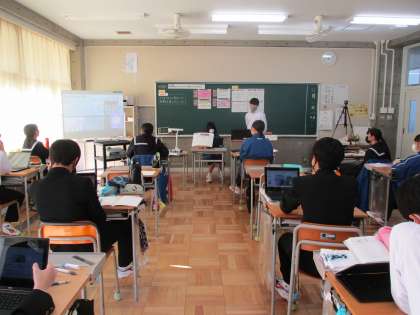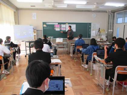 11月24日(木) 3年生(社会)「企業への投資」 公開日 2022/11/25 更新日 2022/11/25 できごと 班ごとに、お菓子の会社を起業するという想定でプレゼンを作り発表しました。聴いている生徒は、そのお菓子は売れそうか、実現できそうか、社会に貢献しているかなどの視点から判断し、投資先を選びます。この活動をとおして、企業が社会に対してどのような責任を負っているかという単元の課題に迫ります。