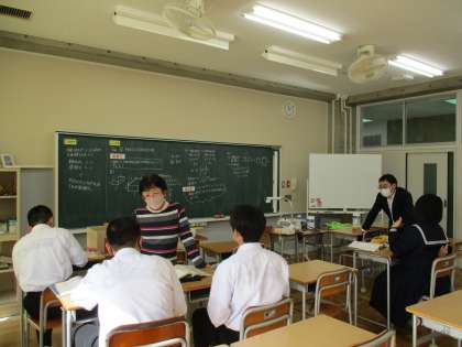 相似な図形の学習が進んでいます。線分の比つまり相似比を使って,表面積や体積の比も求めることができます。三角すい,円柱,直方体,いろいろな立体が出てきて,みんな全集中で問題に取り組んでいます。