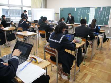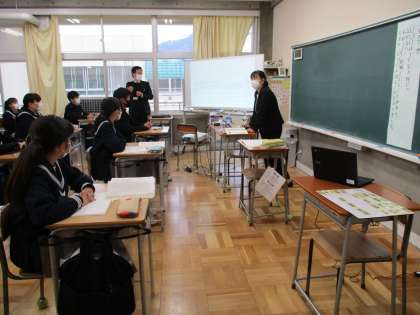 11月29日(火) ICT教育実践推進校 授業公開(2年国語) 公開日 2022/11/30 更新日 2022/11/30 できごと 2年国語は,古文を根拠に登場人物の特徴を捉えて論じる学習でした。「これまで」にムーブノートやオクリンクに蓄積してきた人物に対する自分の印象や友達がもった印象を,「ここでは」で交流して人物像をより深く解釈しました。欠席の生徒もリモートで参加し,みんなで活発な交流になりました。「このあとは」で知識や体験をつなげて文章を完成します。