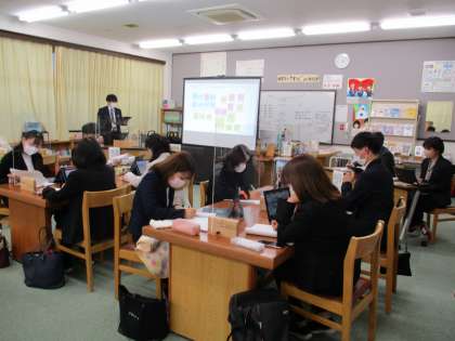11月29日(火) ICT教育実践推進校 授業公開(授業研究会・音楽) 公開日 2022/11/30 更新日 2022/11/30 できごと 授業公開後の授業研究会でも,ジャムボードを使って意見交流を行いました。どの分科会も活発な意見交流が行われ,指導主事の先生からも的確な指導講評をいただきました。