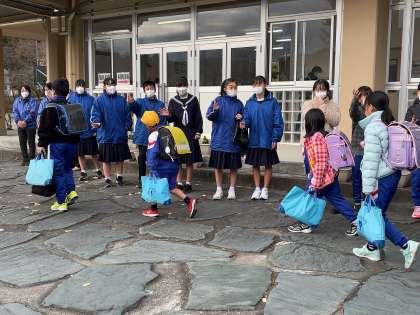 12月5日(月) 小中合同あいさつ運動 公開日 2022/12/05 更新日 2022/12/05 できごと とっても寒い朝でした。そんな中,生徒会本部役員と2年生の有志の皆さんが,鬼石北小学校と鬼石小学校へ出向き,地域の方々や小学生と一緒にあいさつ運動を行いました。「おはようございます」の気持ちのよい声と,マスクでちょっと隠れているけれどもにこにこ笑顔で,心あたたまる朝になりました。