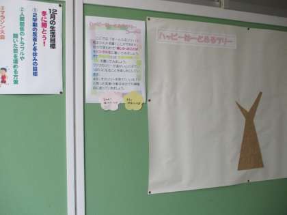 (写真は,ツリー・1年1組・2年1組)