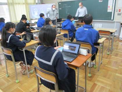 12月6日(火) 3年生(英語)「プレゼンテーション」 公開日 2022/12/06 更新日 2022/12/06 できごと 鬼石地区の活性化のために何をすればよいか、というテーマで英作文し、スライド資料と共にプレゼンしていました。例えば、桜山をもっと有名にしたい、そのためにはライトアップの規模をもっと大きくすればよいのではないか、そうすればもっと多くの人が来てくれるのではないか。などということです。