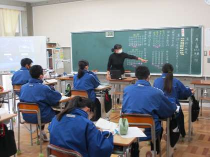12月6日(火) 2年生(国語)「漢詩の風景」 公開日 2022/12/06 更新日 2022/12/06 できごと 漢詩の種類にはいろいろあるようです。五言絶句、七言絶句、五言律詩、七言律詩など。 生徒は元気よく、「春暁」(孟浩然)を音読します。春眠暁を覚えず、処処啼鳥を聞く、、