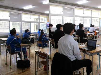 12月8日(木) 生徒集会 公開日 2022/12/08 更新日 2022/12/08 できごと 朝活動は,生徒集会でした。感染症対応のためリモートで行いました。生徒会本部役員から,今期の生徒会活動のスローガンの発表や,具体的な取組の提案などが,ありました。スローガンは「進取果敢」「進んで取り組み挑戦していこう」と呼びかけられました。