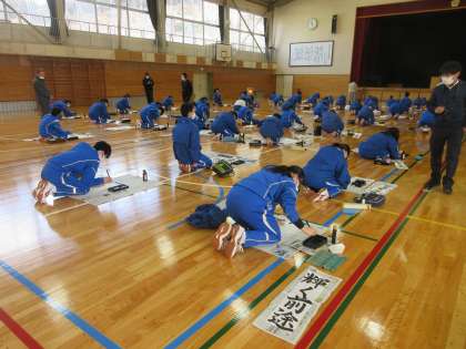 1月10日(火) 校内書き初め大会〜その2〜 公開日 2023/01/11 更新日 2023/01/11 できごと 書き初めの文字はお手本から自分で選びます。思いを込めて,一筆一筆ていねいに書いています。最後まで集中して取り組め,気持ちが引き締まる時間になりました。