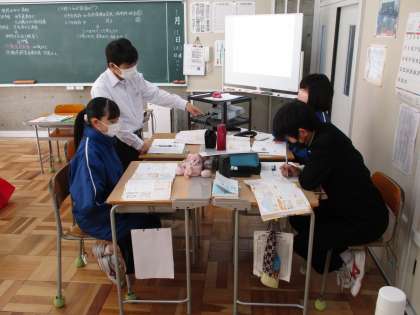 1月11日(水) 3年生(社会)「少子高齢化と財政」 公開日 2023/01/11 更新日 2023/01/11 できごと 現在日本が抱えている課題についての学習でした。このまま労働人口が減っていくことになると、財政に当たる影響は深刻です。年金や医療などの制度を維持できなくなります。六〇歳からもらえていた年金が先延ばしになるなど、もうすでに、影響が出始めています。こういった課題にどのように対応すればよいのか?について、生徒なりに考えていました。