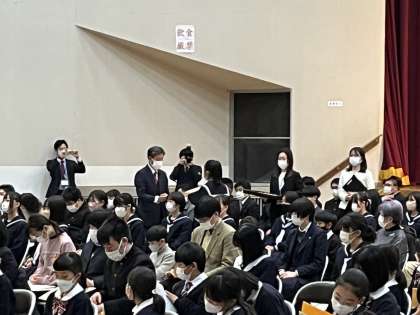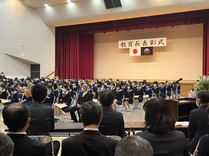 3年ぶりに教育長表彰式が開催されました。本校からは、昨年の県中体連総体で優勝した生徒一名が表彰を受けました。おめでとうございます!