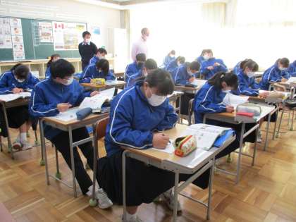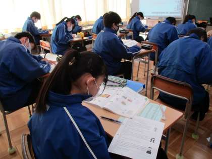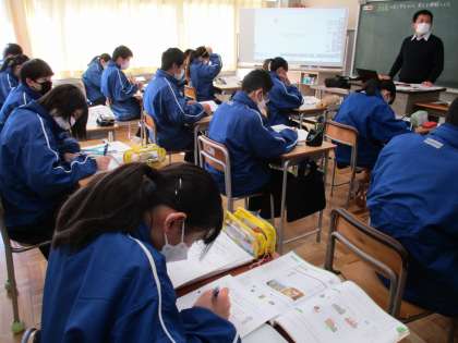 2月16日(木) 2年生(英語)「Workikng Overseas」 公開日 2023/02/17 更新日 2023/02/17 できごと 海外で働く日本人を紹介するホームページの記事を読んでいます。「愛されている」「話されている」「使われている」など学習した受け身の文に注意しながら読んでいきます。海外で生活してみたくなります。