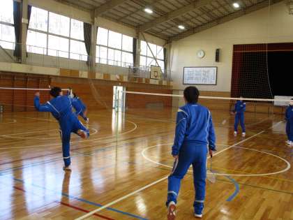 バスケットボール、卓球、バドミントン、ソフトテニスの4種目から、各自が選択した球技で汗を流しています。
