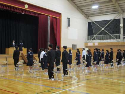 3月10日(金) 卒業式予行練習2 公開日 2023/03/12 更新日 2023/03/12 できごと 在校生送辞と卒業生答辞も,みんなで気持ちをひとつにして臨みます。内容は予行では明かされませんでした。卒業を前に最後にお互いの思いを伝え合う大切な場面です。