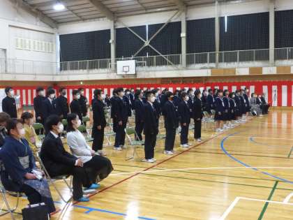 国歌斉唱と校歌斉唱です。昨年度は許されなかった歌うことが,今年度はできます。マスクは着用していますが,心のこもった声がよく聞こえてきます。