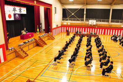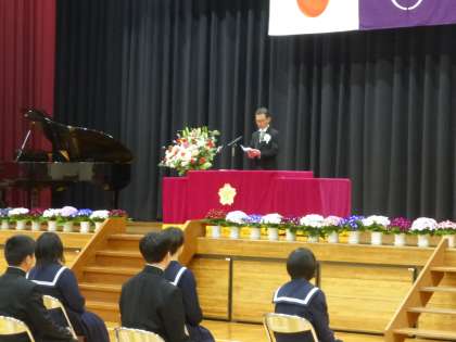 校長先生の式辞と来賓としてお招きしたPTA会長様の祝辞です。鬼石中で培った「自立・貢献」を生かして新し世界で羽ばたいてほしい,社会で活躍できる人になってほしい,温かいメッセージをいただきました。