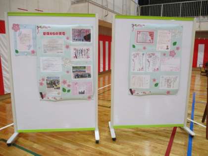 今年度も教育長様の告示と市長様の祝辞はしおりに入れさせていただきました。お世話になった先生方からも多くのお祝いメッセージが届き,数人の方のメッセージを紹介しながら掲示と冊子にして披露しました。