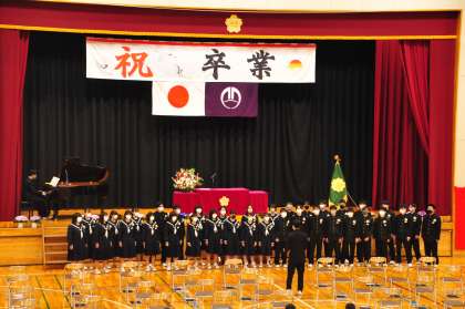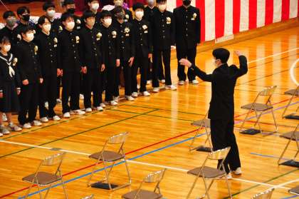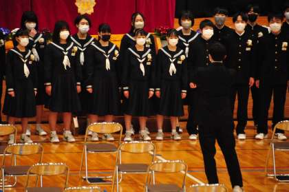 3月13日(月) 第37回卒業式9 公開日 2023/03/13 更新日 2023/03/13 できごと 卒業生合唱「友〜旅立ちの時〜」です。心をひとつにして歌う3年生の姿と美しいハーモニーに,会場全体が感動に包まれました。「さようなら そして ありがとう」いよいよ旅立ちの時が近付いていることを感じ,涙をそっとおさえる生徒や保護者の姿も見られました。
