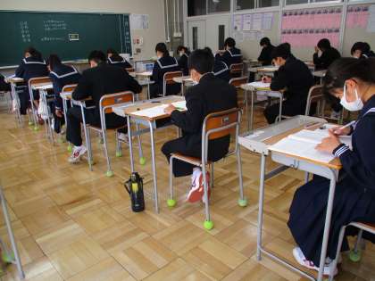 4月13日(木) 3年生 第1回実力テスト 公開日 2023/04/13 更新日 2023/04/13 できごと 今日は,第1回目の実力テストです。1年生の学習内容がテスト範囲でした。春休みに復習してきた成果を発揮できたでしょうか。みんな集中して取り組んでいました。 廊下にはカバンがきれいに並べられていました。