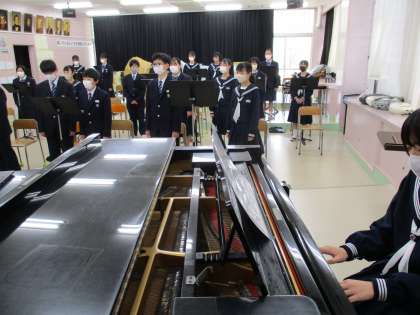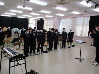 4月14日(金) 2年生(音楽)「オリエンテーション」 公開日 2023/04/16 更新日 2023/04/16 できごと 音楽は今年度から先生が代わりました。新しい先生の自己紹介があり,それに答えて2年生も自己紹介をしました。 そして,鬼石中校歌から練習です。あらためて歌詞の意味を考えながら歌いました。今年度は歌う機会も増え,しっかり歌えるようになれそうです。