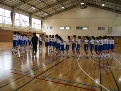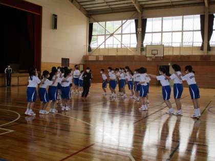 4月14日(金) 1年生(体育)「フォークダンス」 公開日 2023/04/16 更新日 2023/04/16 できごと 1年生は5月に榛名高原学校へ行きます。その時のキャンプファイヤーでフォークダンスをします。それに向けての練習が始まっていました。 1年生のお気に入りで「もう1回!」とリクエストされていたものが,ジェンカです。1フレーズ終わったところで列の先頭がじゃんけんをし,負けた列は勝った列の後ろにつき,最後は長い1列になります。とっても楽しそうでした。