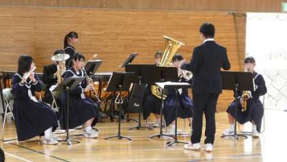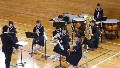 吹奏楽部は今年度から新しい顧問を迎えて活動しています。部員が少ないことが悩みです。でも,いい音が出ています。