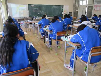 4月17日(月) 2年生(社会)「日本はどんな地形をしているのだろう」 公開日 2023/04/18 更新日 2023/04/18 できごと 日本の地理の学習が始まりました。まずは,日本全体を見渡し,どんな地形をしているのかを考えます。「フォッサマグナ」,はじめは少し言いづらそうでしたが,繰り返し言っているうちに慣れてきました。きっともう忘れないでしょう。