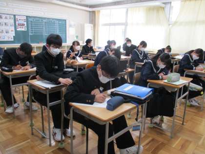 4月17日(月) 3年生(英語)「学習した表現を使って自己紹介をしよう」 公開日 2023/04/18 更新日 2023/04/18 できごと これまでに学習したいろいろな表現を使い,自分のことを相手に分かりやすく紹介することができるようになりました。口頭で伝えたことを文字にして書いて残します。分からないことはどんどん質問していました。