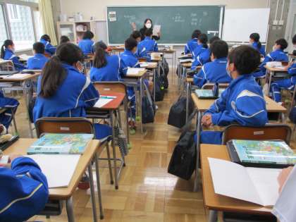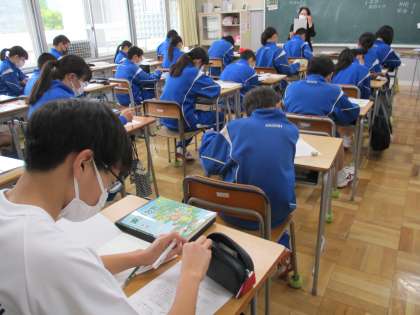 1年生の家庭科は,ガイダンスが行われました。教科書の目次を使い,中学3年間でどんなことを学んでいくのかを見通しました。家庭科は自立するための学習であること,まさに,鬼石中の教育目標につながります。みんな集中して聞いていました。