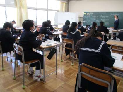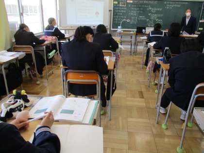 4月19日(水) 2年生(数学)「多項式の加法・減法をできるようになろう」 公開日 2023/04/20 更新日 2023/04/20 できごと これまでに多項式と単項式がまじった加法・減法のやり方を学んでいます。いろいろな練習問題に挑戦して,できるだけ速く正確に解く力を身に付けます。横に並べて計算する,縦に並べて計算する,自分に合った方法でどんどん解いていきました。