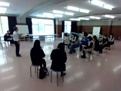 総会後は各階のランチルームで学年懇談会が行われました。 (上から1年、2年、3年)