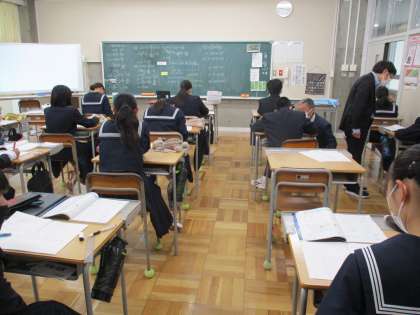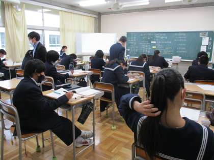 4月26日(水) 2年生(数学)「多項式と数との乗法の仕方を考えよう」 公開日 2023/05/07 更新日 2023/05/07 できごと 単項式同士の乗法を振り返ってから,多項式と数との乗法を行います。分配法則を使って計算すればよさそうです。もれなく全てにかけることを忘れないようにやっていきます。