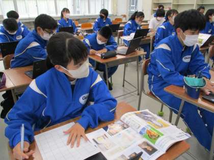 4月26日(水) 2年生(美術)「今を生きる私へ」 公開日 2023/05/07 更新日 2023/05/07 できごと 2年生の最初の作品は,自画像です。顔のバランスをとるために,マスを使って練習してみます。自分の顔をよく見て,自分を知って,丁寧に描いていきます。
