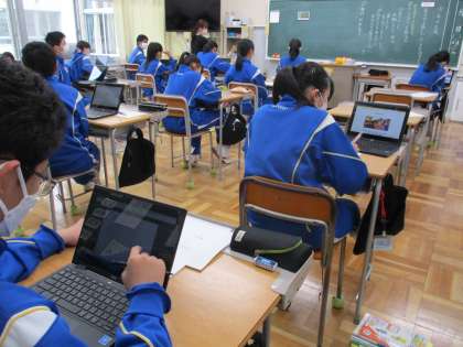 4月26日(水) 3年生(国語)「少年の主張」 公開日 2023/05/07 更新日 2023/05/07 できごと 3年生も少年の主張の原稿づくりが始まっています。中学校最後の少年の主張です。自分の思いをしっかり伝えられるように,原稿づくりから力が入っています。発表が楽しみです。