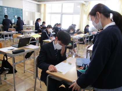4月27日(木) 2年生(国語)「少年の主張」 公開日 2023/05/08 更新日 2023/05/08 できごと 少年の主張の原稿づくりが続いています。テーマがきまり,構成ができてきたようです。先生からアドバイスをもらいながら,いよいよ書き始めです。