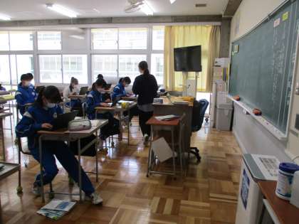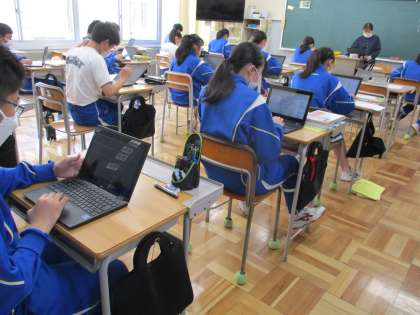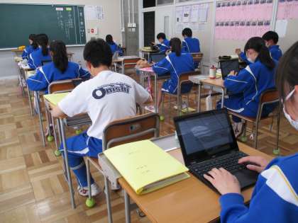5月8日(月) 3年生(国語)「少年の主張」 公開日 2023/05/09 更新日 2023/05/09 できごと 少年の主張の原稿づくりが進んでいます。自分の主張をしっかり伝えられるように,具体的なデータや事例を取り入れて文章を構成しています。タブレットPCで打ち込み作成した原稿を先生に送り,アドバイスをもらい,さらによいものにしていきます。力作が並び,発表が楽しみです。