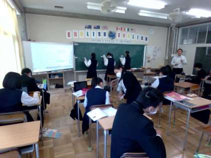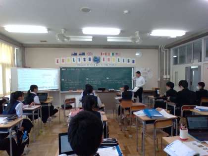 5月11日(木) 3年生(英語)「学んだ表現を活用して英作文しよう」 公開日 2023/05/12 更新日 2023/05/12 できごと 3年生の英語では、ハラール・フードについての文章を読んで、他の国のユニークな食文化について、英作文で表現しました。お互いの文を共有することで、様々な国の食文化についても考えることができました。 授業 2年