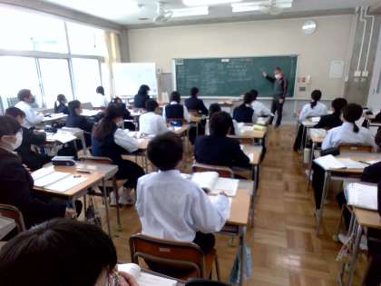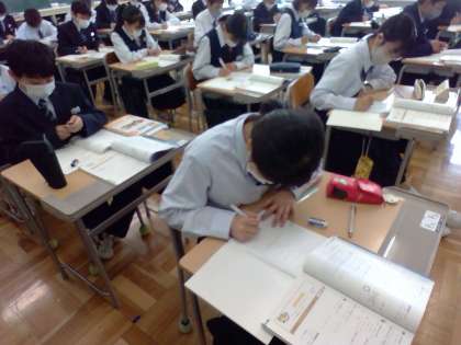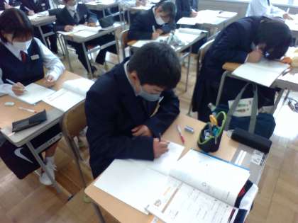 5月12日(金) 1年生(数学)「累乗の計算をしよう」 公開日 2023/05/12 更新日 2023/05/12 できごと これまでに、いくつかの数の積を求める際、負の数の個数が偶数個のとき符号が+、奇数個のとき符号が−になることを学習しました。今日は、累乗の指数を使って式を表し、計算する練習をしました。カッコがついている累乗とカッコがついていない累乗では計算結果に違いが出ます。要注意です。 授業 1年